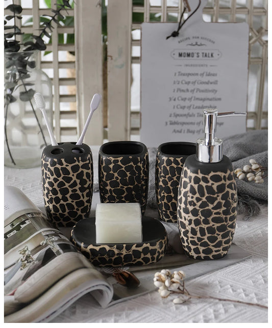 Leopard Print Ceramic Bathroom Set